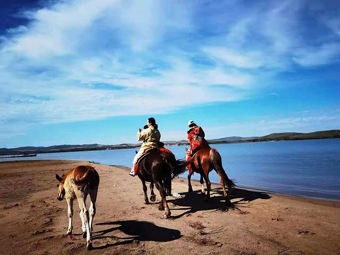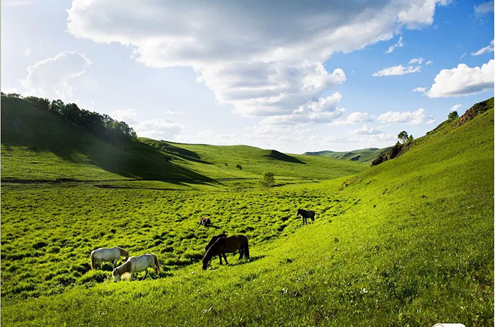 夏天的草原綠草如茵,深呼吸一口,清香的草木味撲鼻而來,讓人心曠神怡、如癡如醉。漫游在草原上,風(fēng)吹草動,形成了一幅如詩如畫的景象,正如北朝民歌“天蒼蒼,野茫茫,風(fēng)吹草低見牛羊”!騎在馬背上,悠哉游哉,仿佛進入了世外桃源。